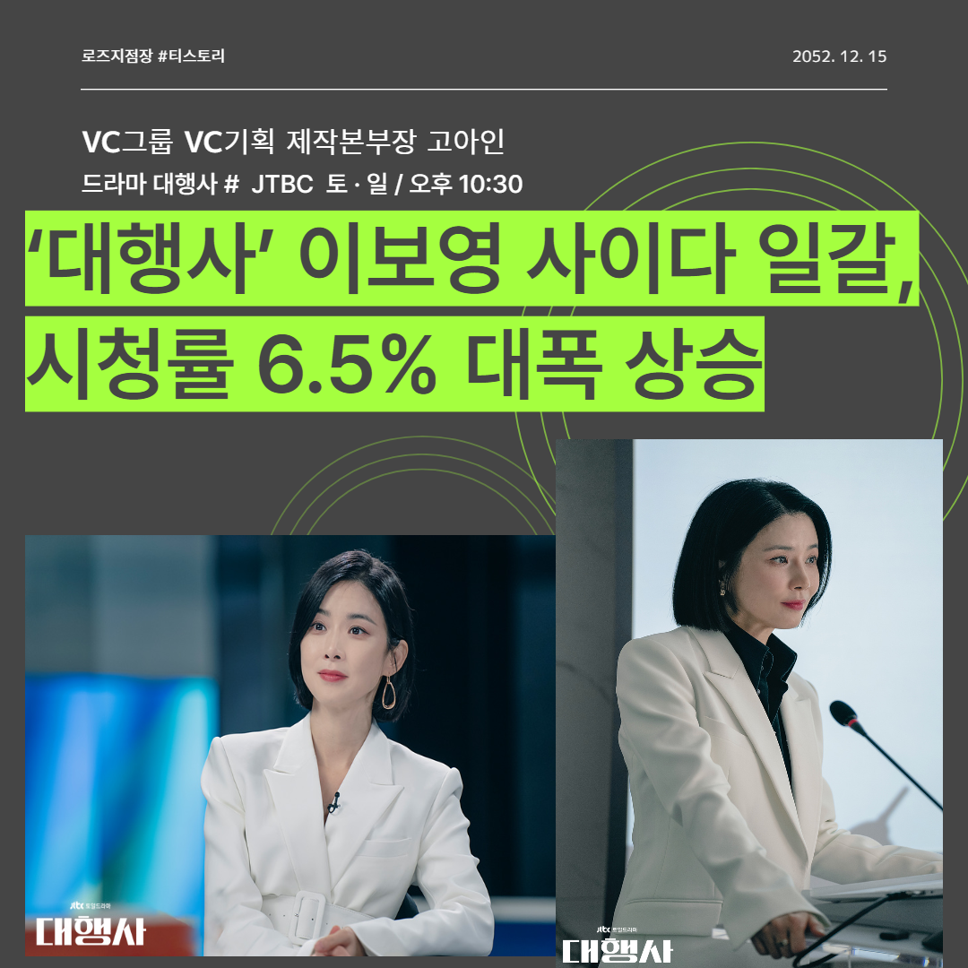 2023.01.08 - [드라마채널★N로즈 지점장 추천작★] - '대행사' 이보영이 읽어낸 시청자들의 욕망, ‘대행사’ 시청률 4.8%로 출발 <주간날씨포함>