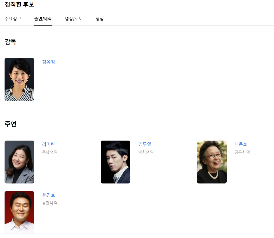 이번 정직한 후보2는 전편과같이 라미란 ,김무열, 윤경호 가 주연이다.