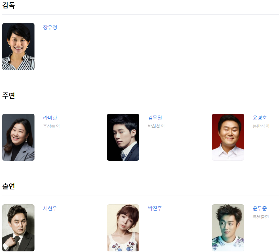 - 라미란, 김무열, 윤경호, 서현우, 박진주, 윤두준