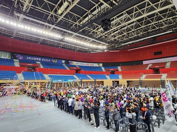 경북 경산시가 주최하고 한국노총 경산지역지부(의장 조인수)가 주관하는 ‘근로자 한마음 갖기대회’가 지난 22일 경산실내체육관에서 성황리에 개최됐다.