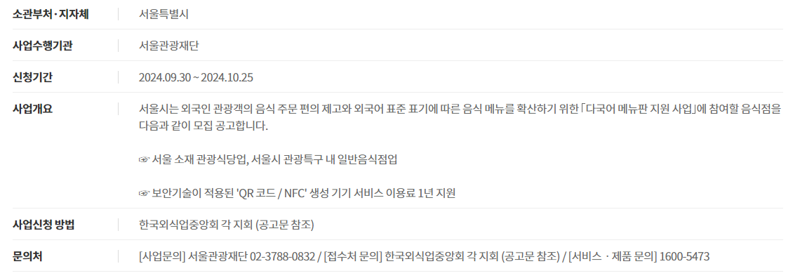 ㅇ 공 고 명: 「다국어 메뉴판 지원 사업」 참여 음식점 모집