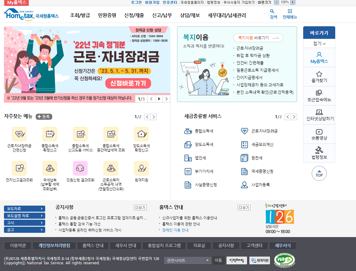 업무도 보고 종합소득세 신고도 하고, 근로장려금도 신청하고 복합적으로 가능합니다.