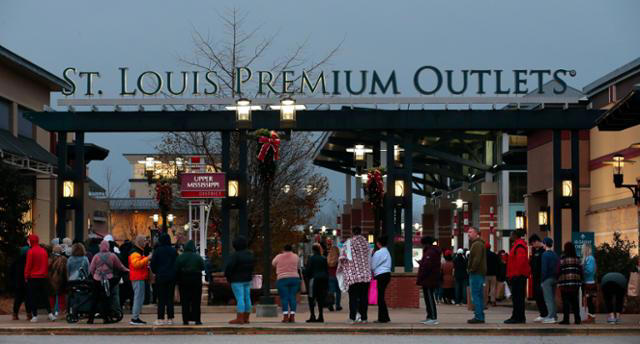 블랙 프라이데이였던 지난달 25일 미국 미주리주 세인트루이스의 한 대형 아웃렛 앞에 동 트기 전부터 쇼핑객들이 줄지어 입장을 기다리고 있다. 한국일보 자료사진