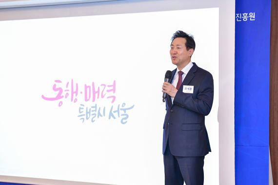 특강에서 교육, 복지, 주거, 교통, 문화, 관광 등 시정 전 분야에 걸친 비전을 밝힌 오 시장은 "서울시가 동행과 매력이라는 키워드로 방향을 전환하기 시작했다"며 "지금 당장은 하고 있는 비즈니스에 더 관심이 많겠지만 서울 시정에 관심을 갖고 이런 변화에 동참해 함께 가면 좋겠다"고 했다.