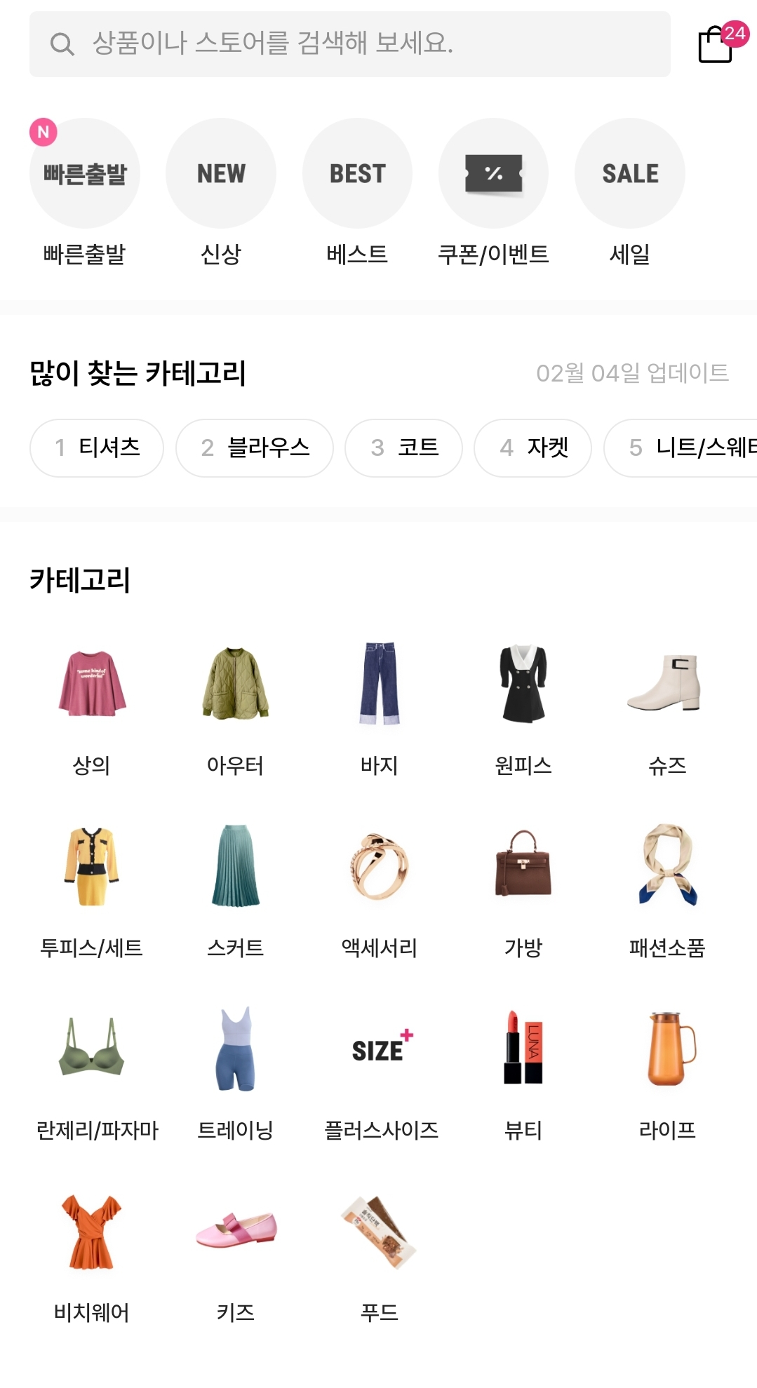 카테고리별로 상세하게 되어있고, 참고로 보이는건 ai처럼 자동으로 성별 지정되서 여성이면 여성상품위주