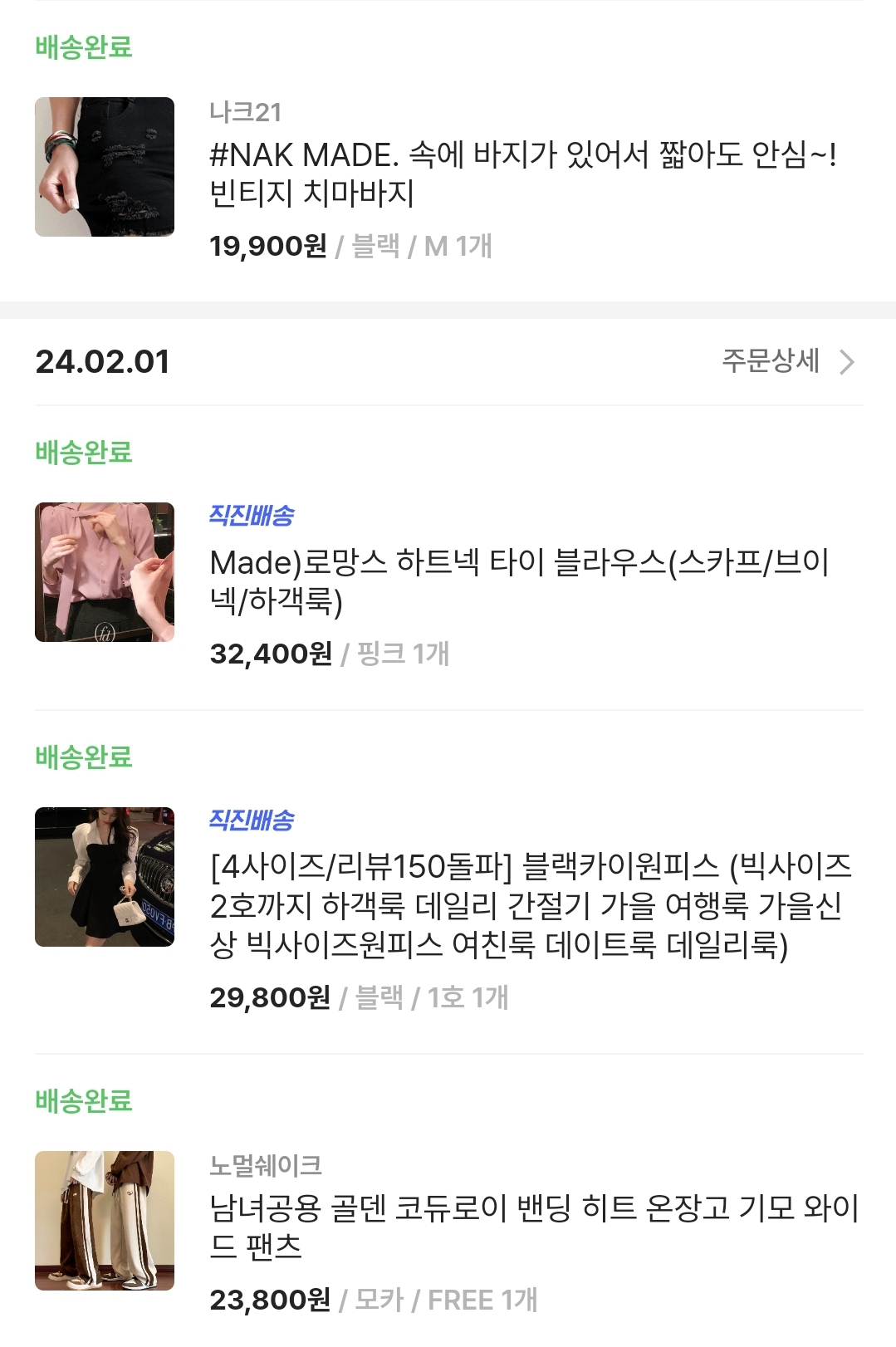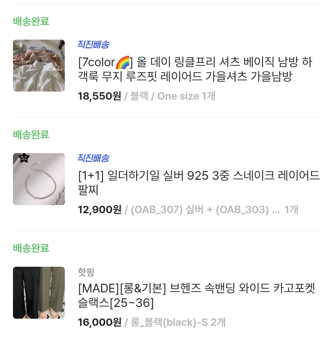정말 다양한 카테고리와 다양한종류의 의상을 구매 했어요,