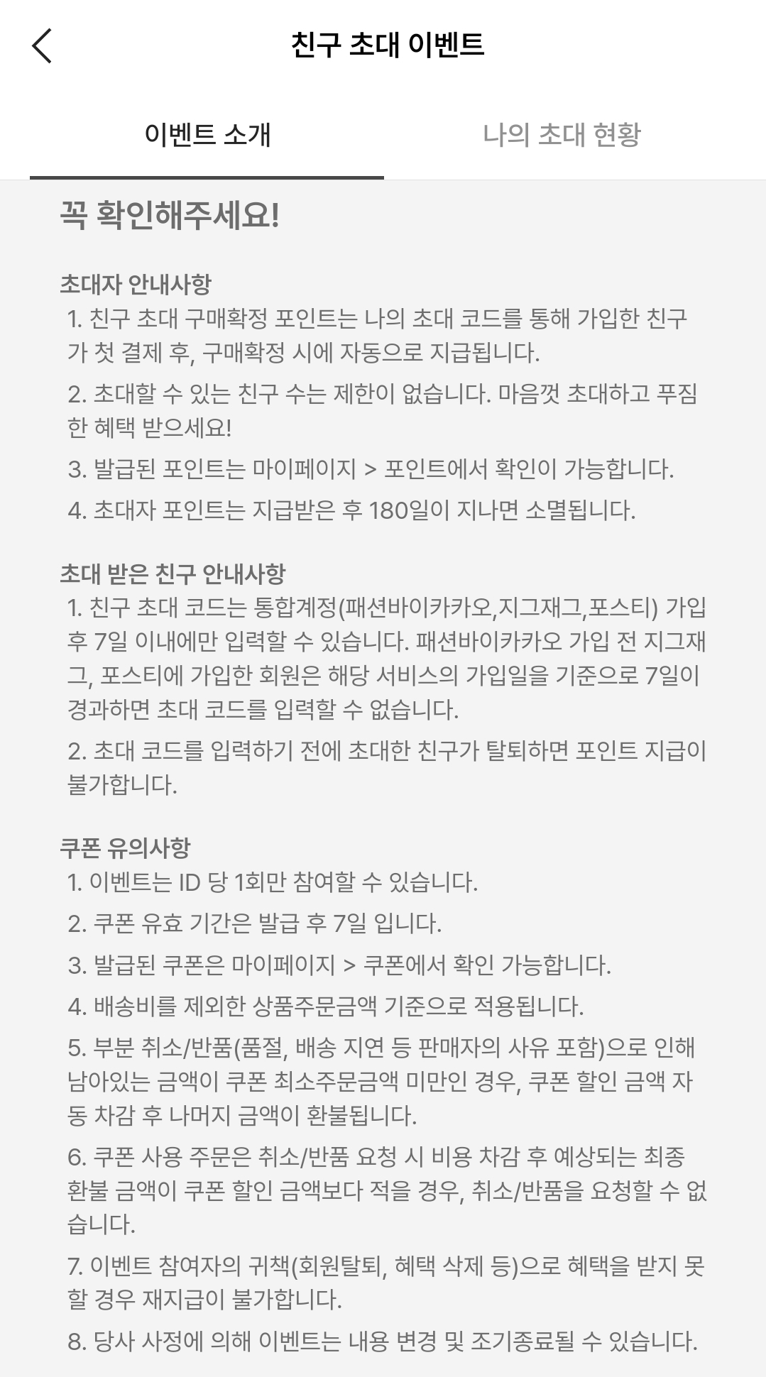 아래와 같이 초대하여 친구소개로 가입하면 쿠폰도 주고, 할인가로 서로 구매할 수 있어서도 좋으니