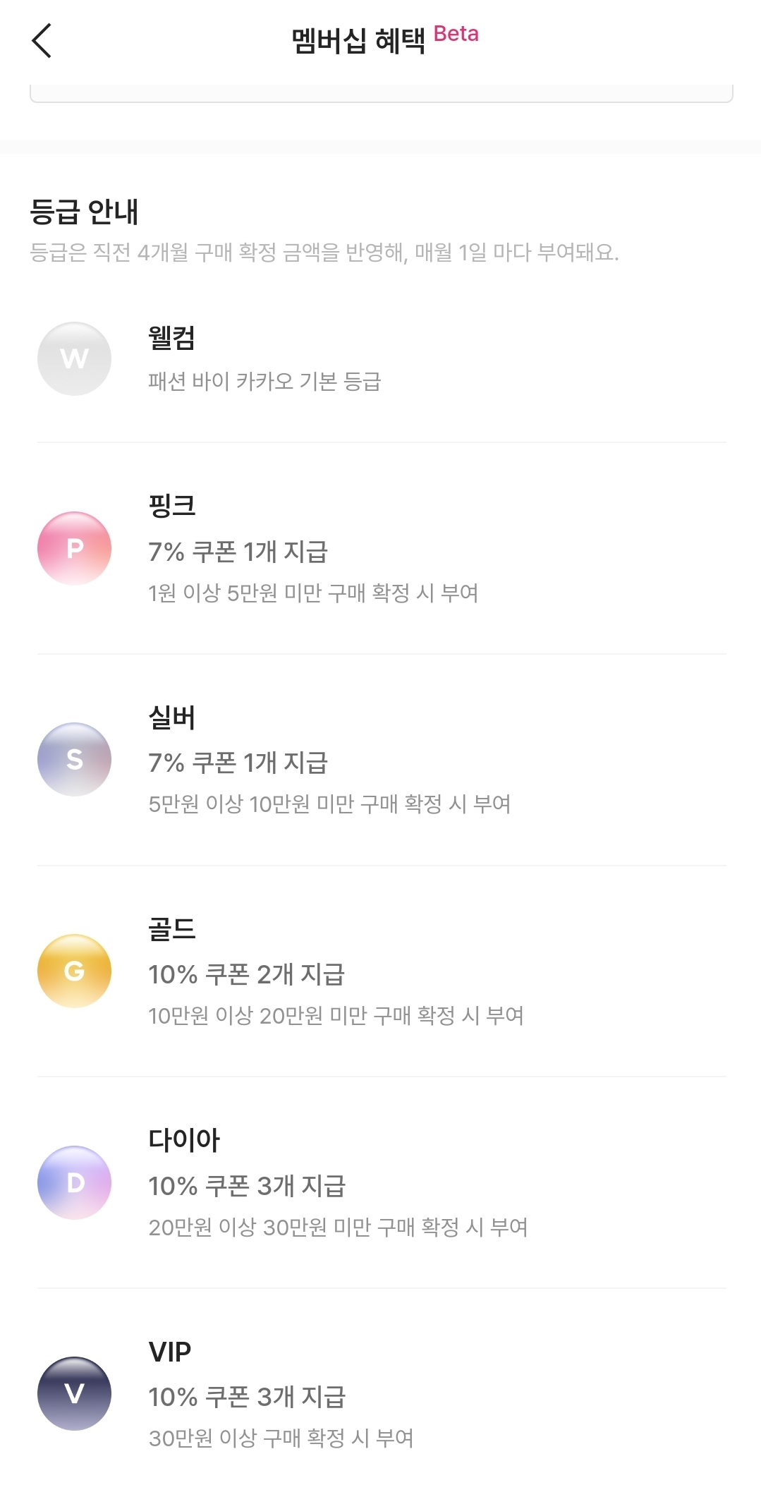 이건 활동과 상관없이 구매금액 기준으로 현재 무기한 Beta 등급선정기준이래요..