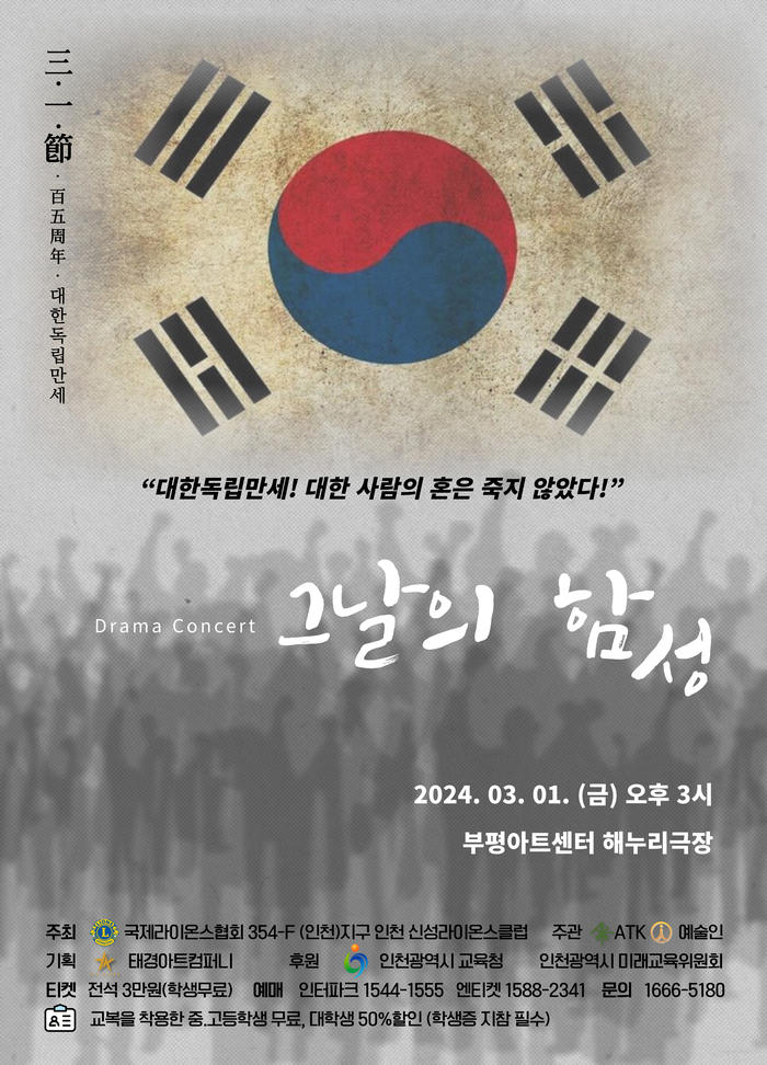 인천신성라이온스클럽은 105년 전 삼일절, 인천 지역에서 활동헀던 독립운동가들의 이야기를 ‘한국가곡 역사 콘서트’를 통해 재연한다고 2월 18일 밝혔다.