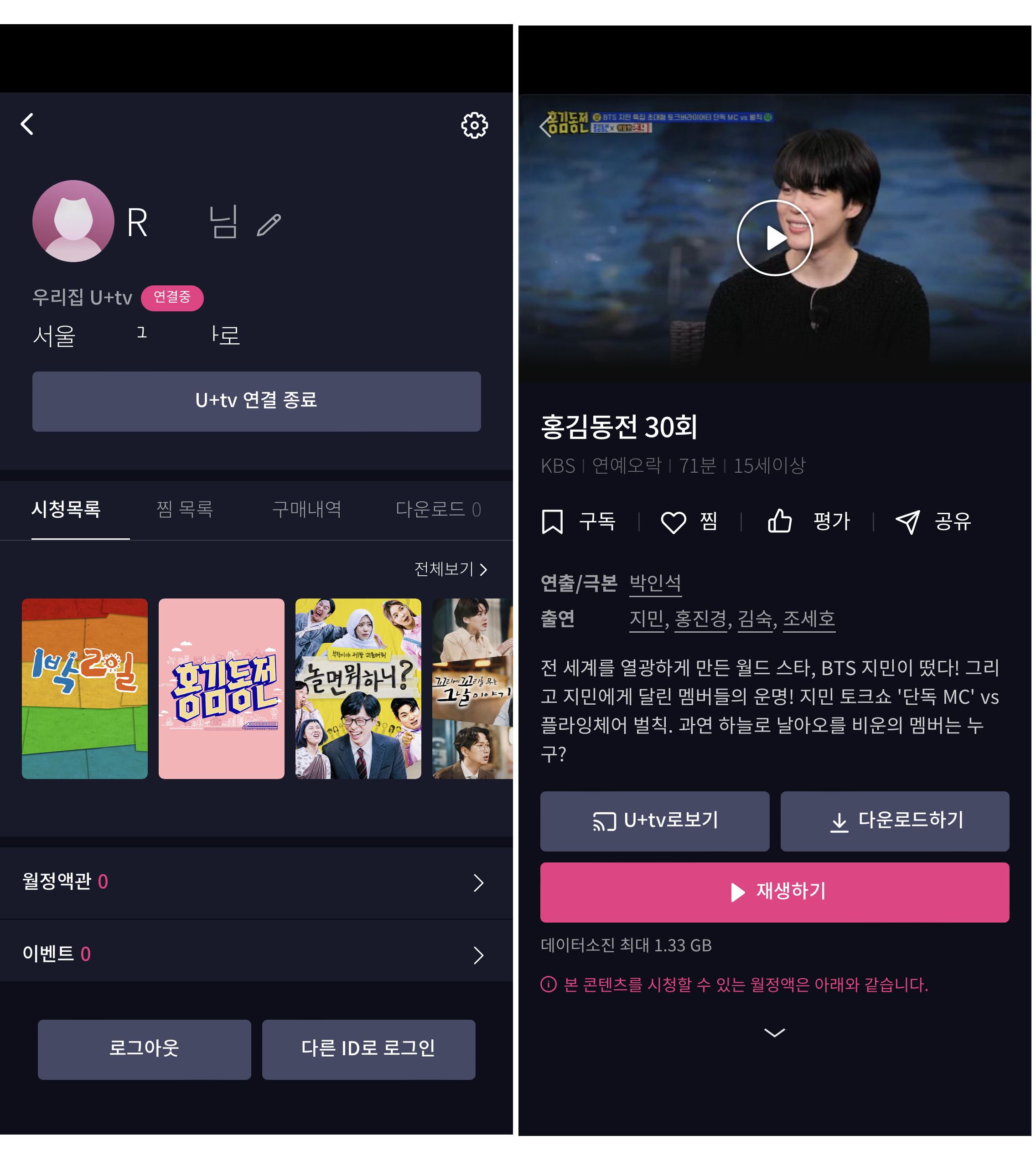드라마 예능 시사 까지는 LGU+서비스로 TV 이용합니다,