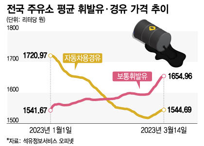 경유 가격도 상황은 마찬가지다. 이날 기준 가격은 1544.69원이다. 지난 1일(1517.94원) 이후 30원 가까이 치솟았다.