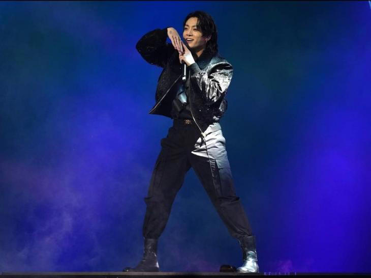 해당 사진 속 정국은 개막식 무대 위에서 좌중을 압도시키는 카리스마와 혼을 쏙 빼 놓는 강렬한 포스를 풍기며 시선을 강탈했다.
