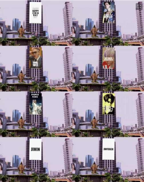 미국 뉴욕의 대표 명소 타임스퀘어에서 10월 10일부터 10월 16일까지 일주일간 지민의 생일을 축하하는 특별 영상이 풀 스크린으로 하루 24시간에 1시간마다 송출된다.