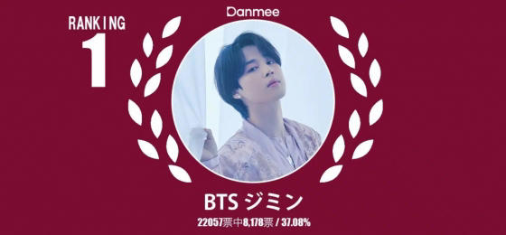 지민이 일본 연예매체 단미(Danmee)가 12월 9일부터 23일까지 실시한 '12월 최고의 한국 남자 연예인' 설문 조사에서 1위에 올랐다.