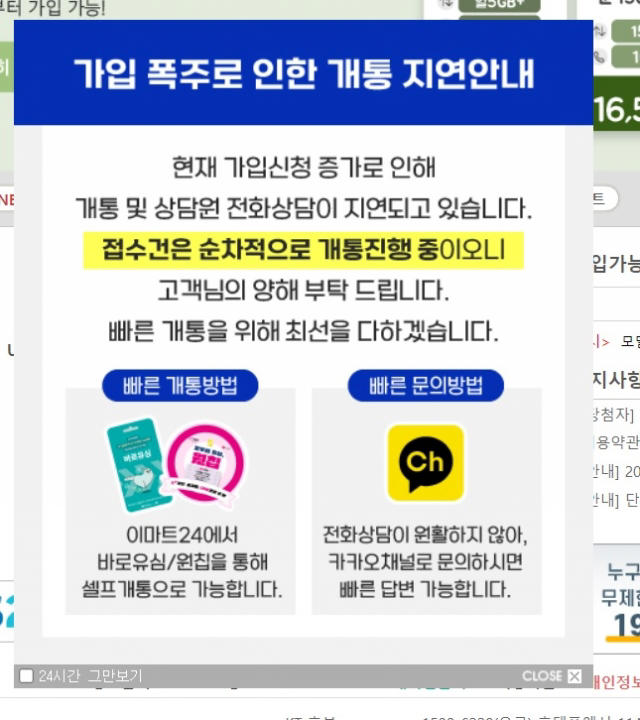 0원 요금제가 인기를 끌면서 문의도 폭주하고 있다. 판매량이 높은 업체들을 대상으로 고객센터 전화상담을 시도했으나, 문의량이 많아 장시간 연결되지 않았다. 한 업체는 홈페이지에 ‘현재 가입신청 증가로 개통 및 상담원 연결이 지연되고 있다’는 공지를 내걸었다. 업체 관계자는 “알뜰폰 업체를 통해 유심을 구매하려면 받는 데에만 5~7일 걸릴 수 있다”고 분위기를 전했다. 요금제 관련 문의란에는 ‘일주일 전 신규 개통 신청을 했는데 유심이 오지 않고 있다’는 등의 글이 올라오기도 했다.