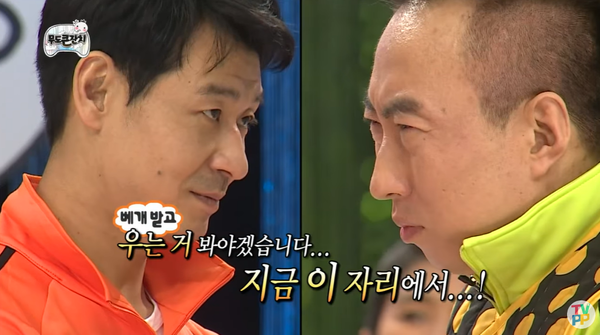 그러면서 몸 쓰는 일에는 의외로(?) 적극적이고 능숙하다. 자취 스킬 만렙인 탓일까. 뚝뚝 끊어 넣는 수제비에는 손맛이 가득이고 처음 만져본다는 타프(캠핑용 방수포)는 어느새 설치 완료. 한편에서는 주황색 트레이닝복을 입고 박명수를 떨어뜨리겠다는 일념으로 혼을 담은 베개를 휘두른다. 결국 '베개왕'이 된 박혁권은 안 쓰던 근육을 무리해서 쓴 나머지 혈뇨를 봤다는 후일담을 덤덤하게 들려주어 웃음을 자아내기도 했다.