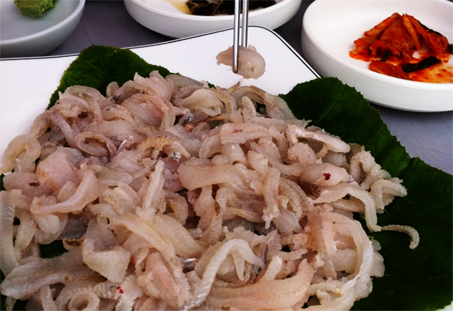 선장님이 잡은 고기로 즉석에서 회를 해주시는데….캬~~~