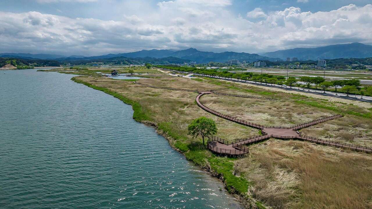 슬슬 남대천 하구 연어생태공원으로 내려가보자. 남대천 하구에 봄이 닿으면 연어생태공원은 연둣빛으로 물든다. 봄기운이 완연해지면 연어생태공원에는 금계국이 만개한다.