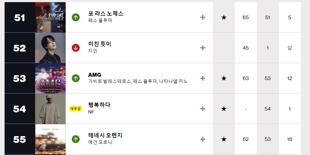 이후 방탄소년단이 지난해 6월 발표한 신곡 ‘옛 투 컴’이 ‘핫 100’ 13위에 올랐다. 방탄소년단 멤버 솔로 곡 차트 성적은 그에 더 못 미쳤다. 정국 ‘스테이 얼라이브’ 95위, 진 ‘디 애스트로넛’ 51위, 알엠(RM) ‘들꽃놀이’ 83위, 제이홉 ‘온 더 스트리트’ 60위 등이었다.