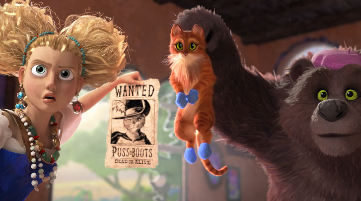 슈렉이 장화신은 고양이를 견인했듯, 이젠 홀로서기에 완전 성공한 그도 11년만에 내놓는 속편에선 새로운 캐릭터를 대거 영입 드림웍스의 아름다운 전통을 잇기도 한다. 장화신은 고양이의 새로운 동반자 견공 페로가 주목할 만하며, 플로렌스 퓨가 맡은 ‘골디락스’는 영어 더빙만 들어도 누구인지 식별 가능할 정도로 존재감이 남다르다. 물론 ‘장화신은 고양이’를 대표하는 타이틀 롤 안토니오 반데라스와 셀마 헤이엑은 여전하다.