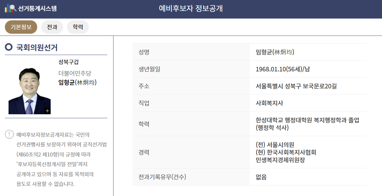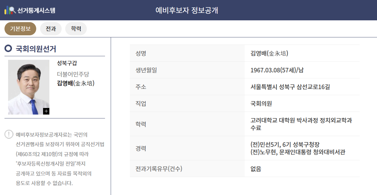 오늘은 성북구, 강북구, 도봉구, 노원구 4개지역구 예비후보군 정보공개와 소식 올려드립니다.