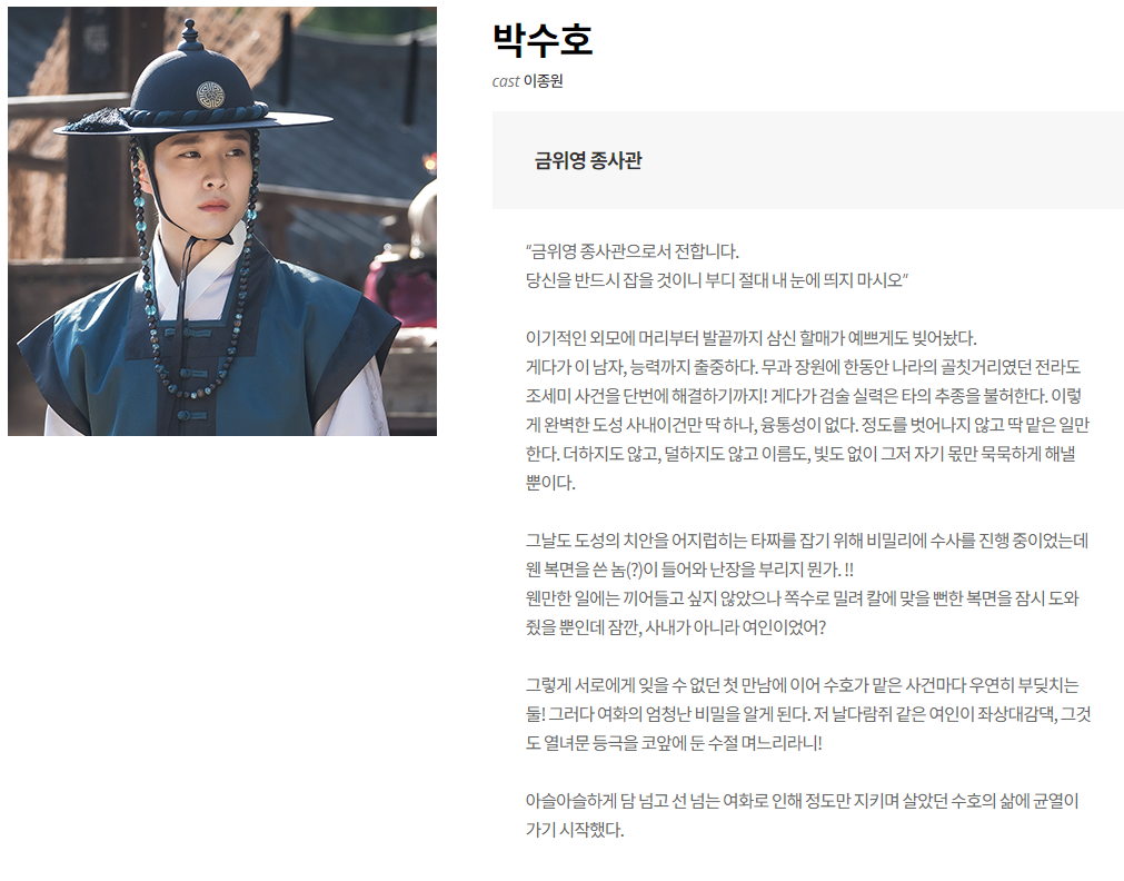 그야말로, 잘생긴 종사관 나리의 로맨스물 되시겠다.