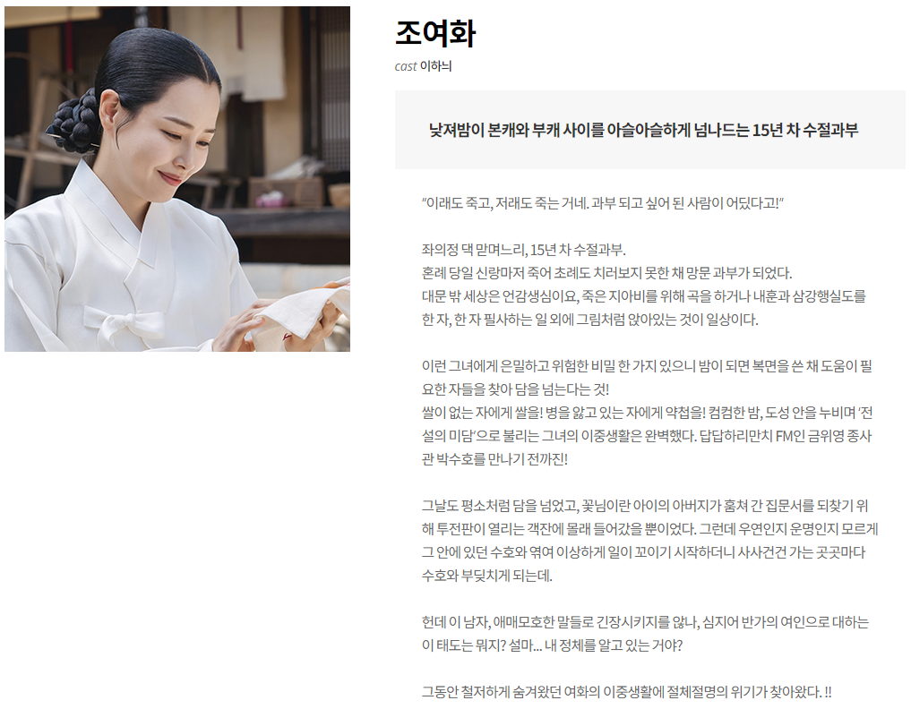 내 마음을 훔친 자는 백성을 구하는 영웅인가, 소복 입은 과부인가.