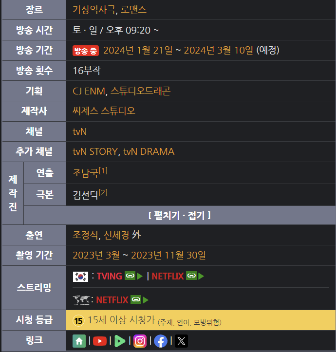 드라마 세작은 추가 포스팅에서 작성할게요 2024년2월3일 기준 5화 방영중입니다~^-^