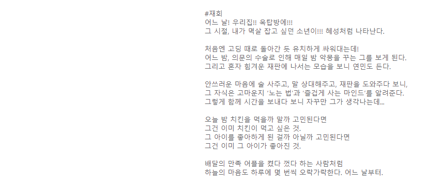 함께 시간을 보내며 적당한 행복을 찾는 이야기다.