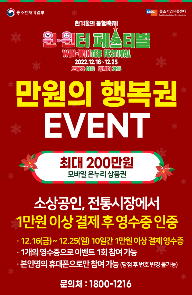 - 2022.12.16.(금) ~ 12.25.(일) 동안 소비한 영수증만 응모 가능
