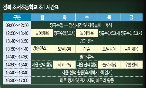 교육부는 초등 저학년의 귀가시간이 실질적으로 2시간 늦춰지는 점을 강조한다. 정규수업 이후 2시간 동안 무료로 양질의 방과후 프로그램을 제공한다. 현재 초등학교의 일과는 학생이 너무 많아 오전·오후반으로 학교가 운영되던 시절부터 이어져온 것이다.
