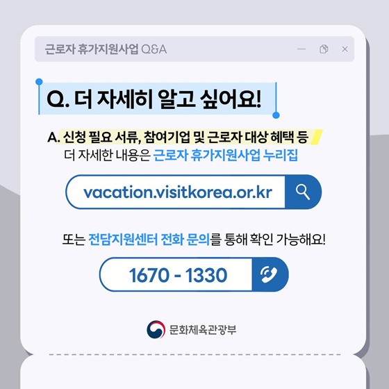 더 자세한 내용은 근로자 휴가지원사업 누리집