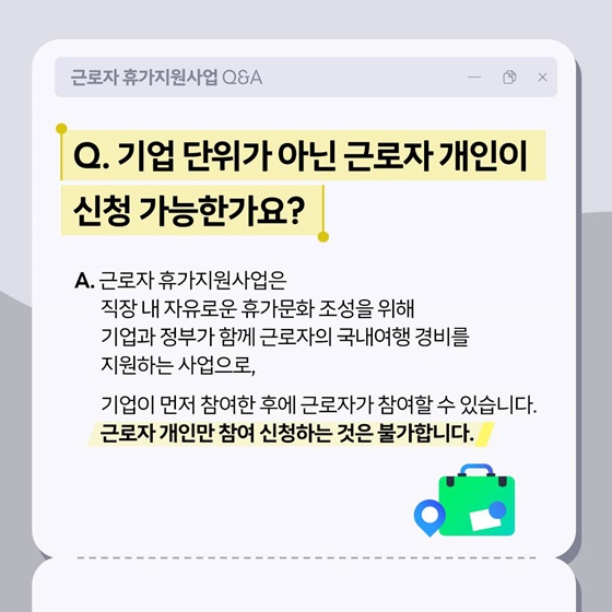 Q. 기업 단위가 아닌 근로자 개인이 신청 가능한가요?