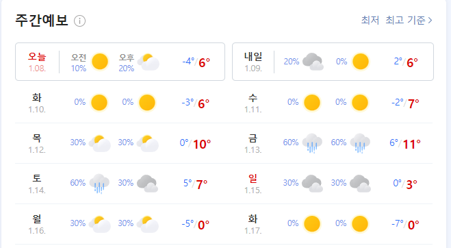 2023.01.08~ 2023.01.17  주간날씨~