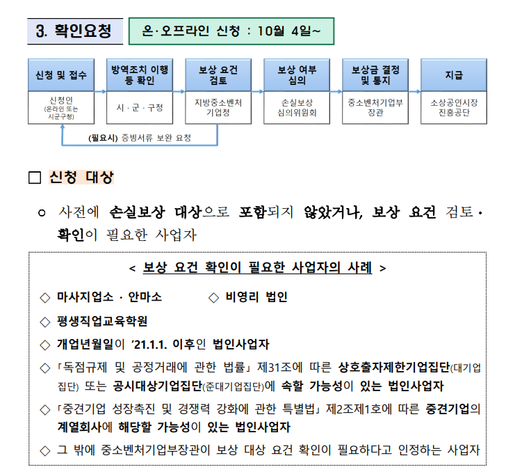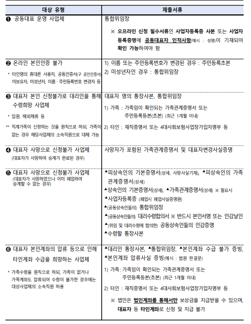아래에 해당되는 사업자들은 확인 후 보상지급절차를 진행하게 되는 사업장임으로 서류