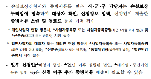 사업자등록증 필수 외에 업체별 보상 대상 요건 확인을 위한 증빙서류