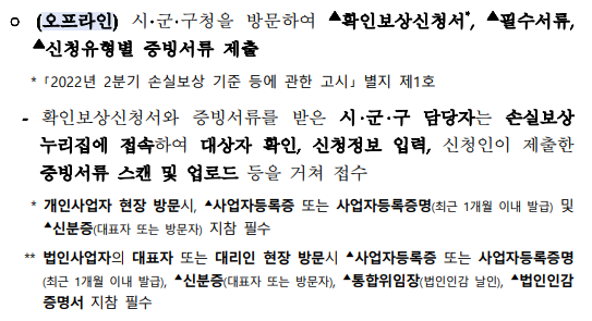 신청 접수는 온라인 오프라인  신속보상,확인보상 신청방법과 동일합니다.