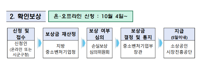 9월29일부터 10월4일 이내 대상업체조회에서 확인보상은 10월4일부터 신청가능합니다 라고 알림팝업을 받으셨으면