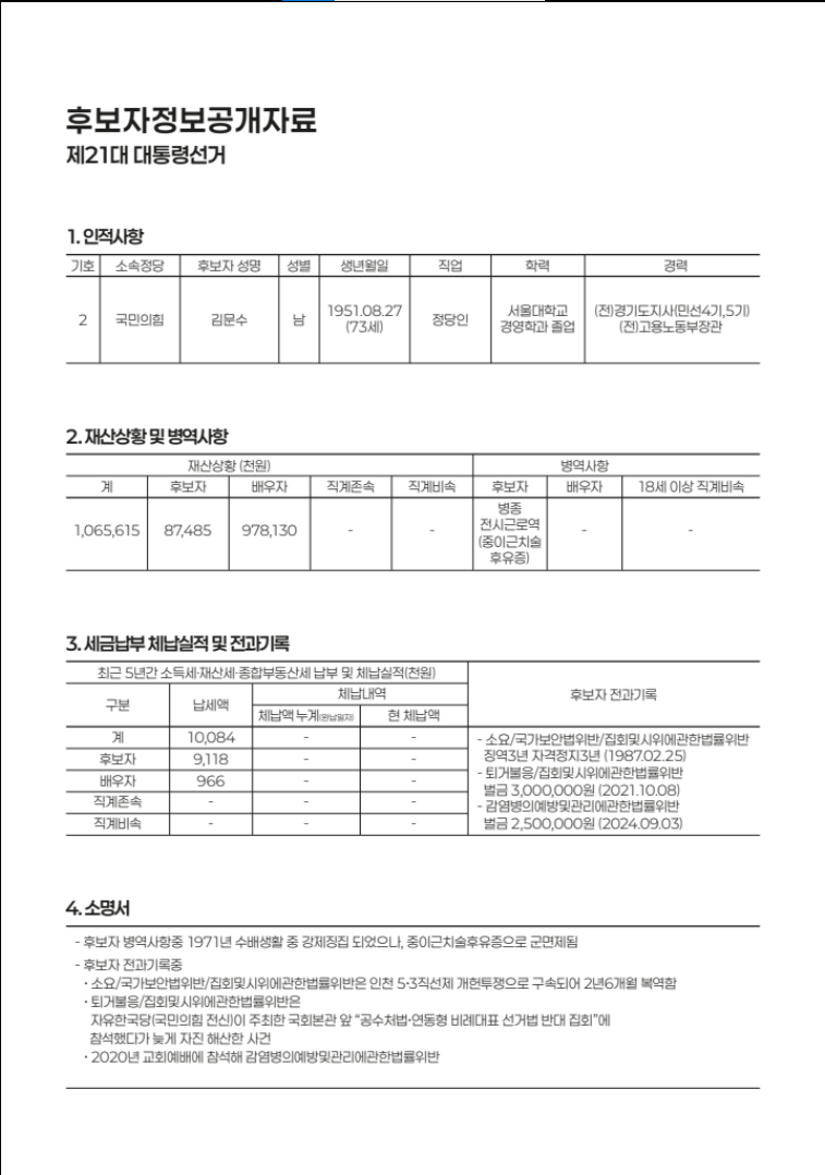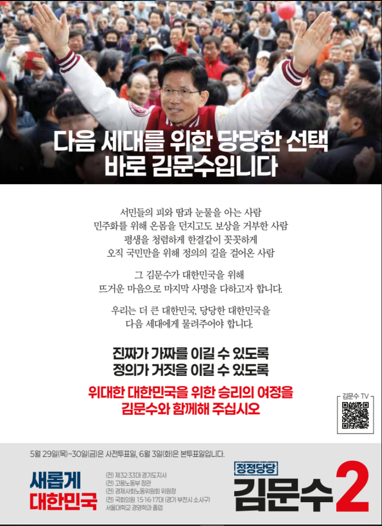기호2번 후보자 김문수님 공약 및 후보자 정보 !
