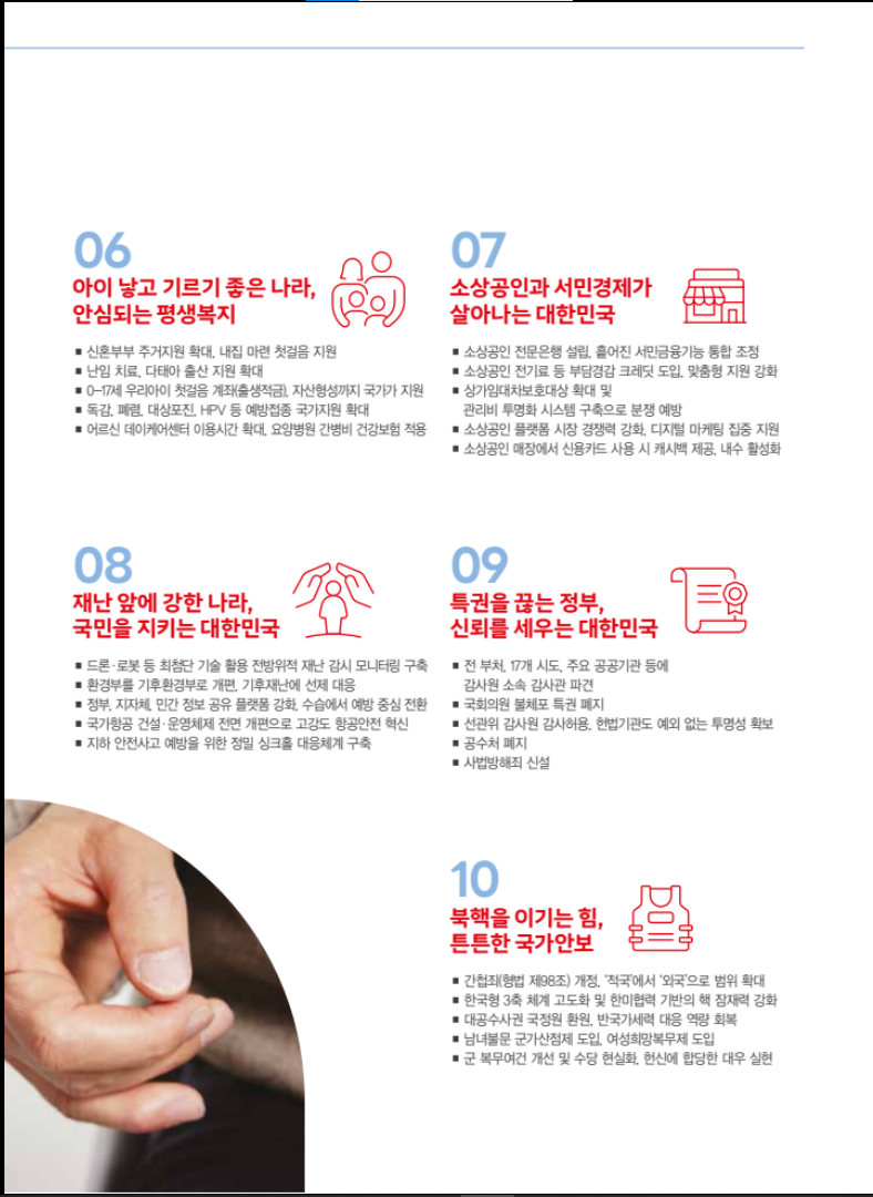 - 복지 정책 강화: 사회적 약자를 위한 복지 정책을 강화하고, 노인 복지 및 장애인 지원 확대를 약속했습니다.