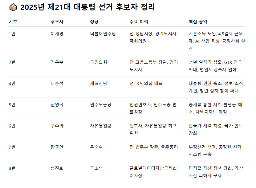 아래는 2025년 대통령 선거 관련 사이트 및 최신소식 후보자 정보 !총 정리 망라입니다~!