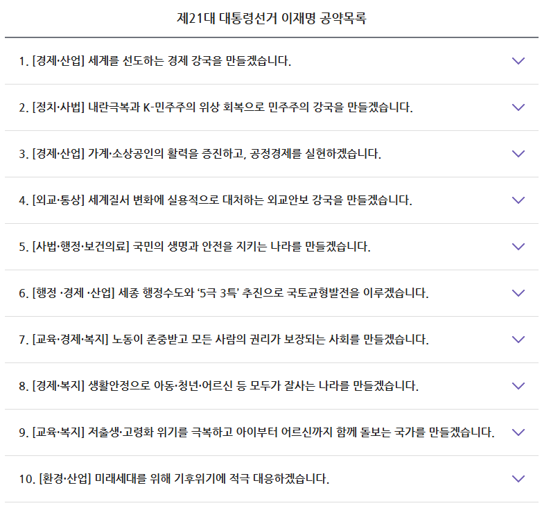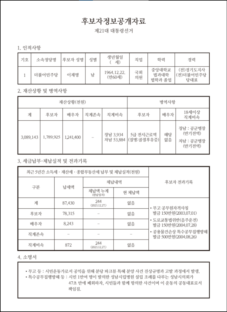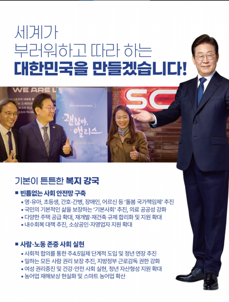 기호1번 후보자 이재명님 공약 및 후보자 정보사항