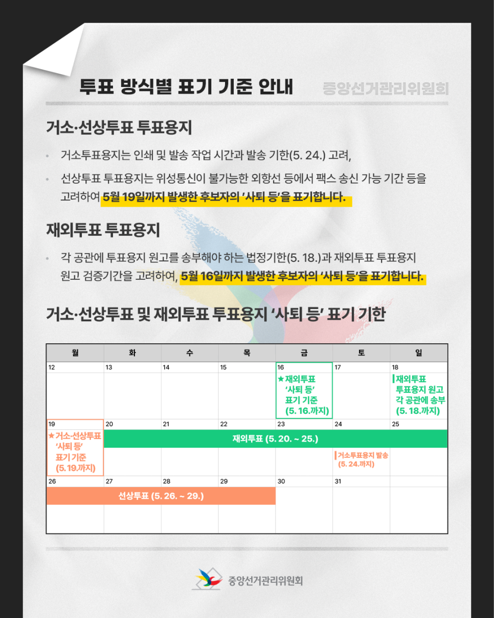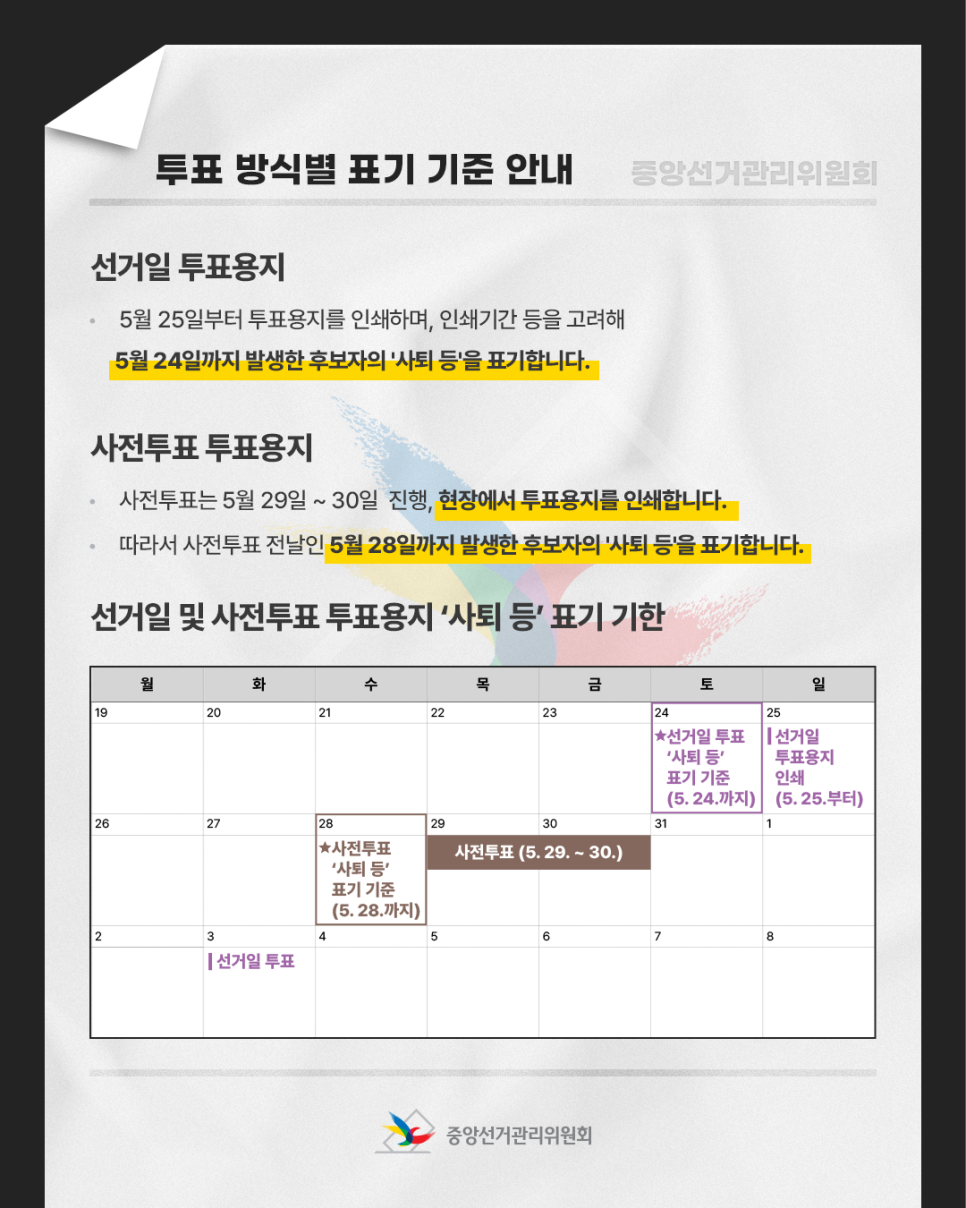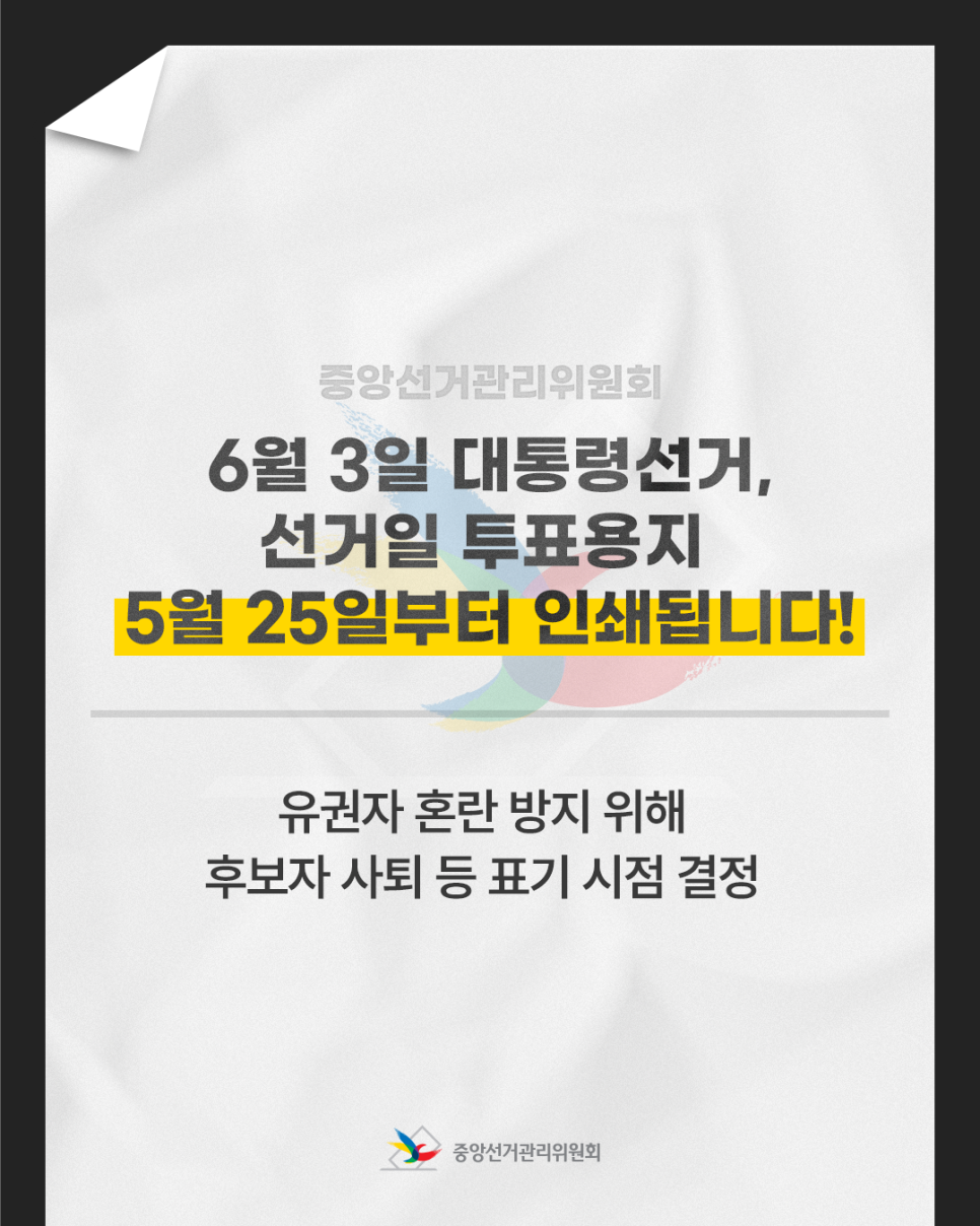 [제21대 대통령선거] 6월 3일 대통령선거, 투표용지는 5월 25일부터 인쇄됩니다!