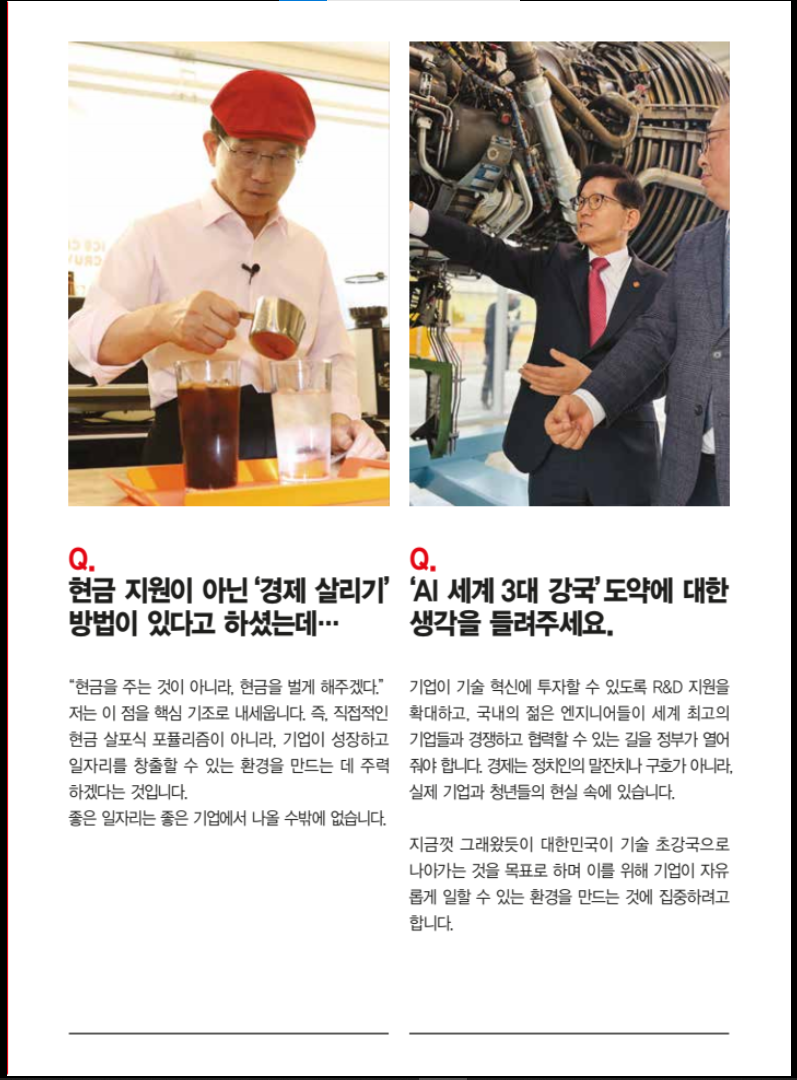• 김문수 후보 (국민의힘): 김문수 후보는 ‘경제 회생’을 최우선 과제로 삼고 있습니다. 그는 대기업 중심의 경제 성장보다는 중소기업과 자영업자 지원을 강화하는 정책을 내세우고 있습니다. 특히, 규제 완화와 세제 혜택을 통해 기업의 투자 활성화를 유도할 계획입니다.