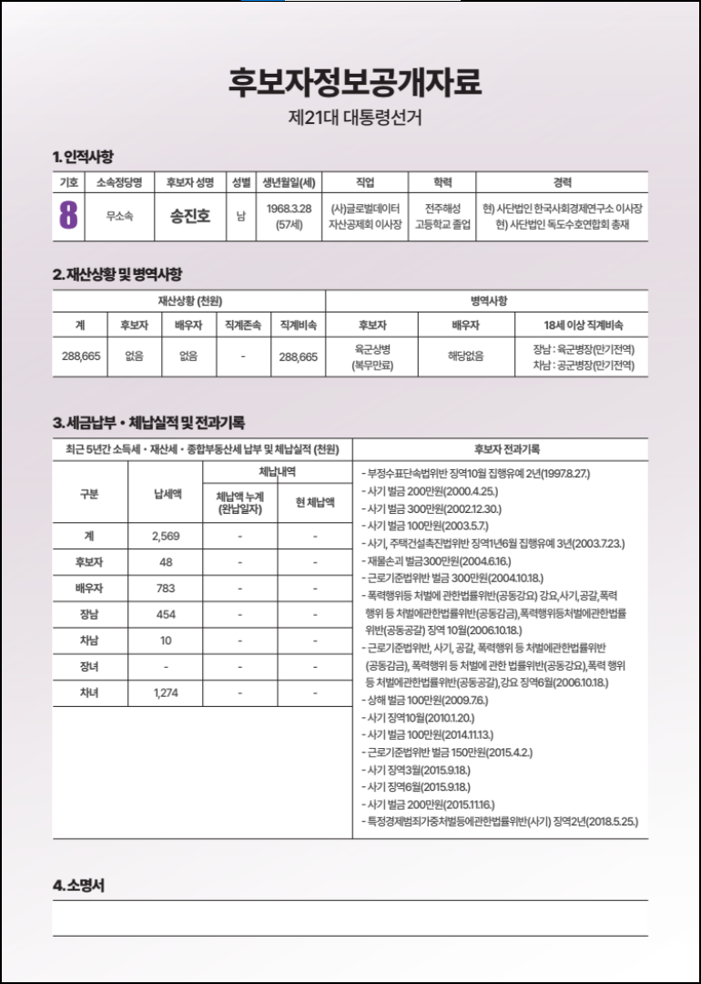후보자정보가 없는것은 없는대로 생략된것이니 오해 없으시기 바랍니다.