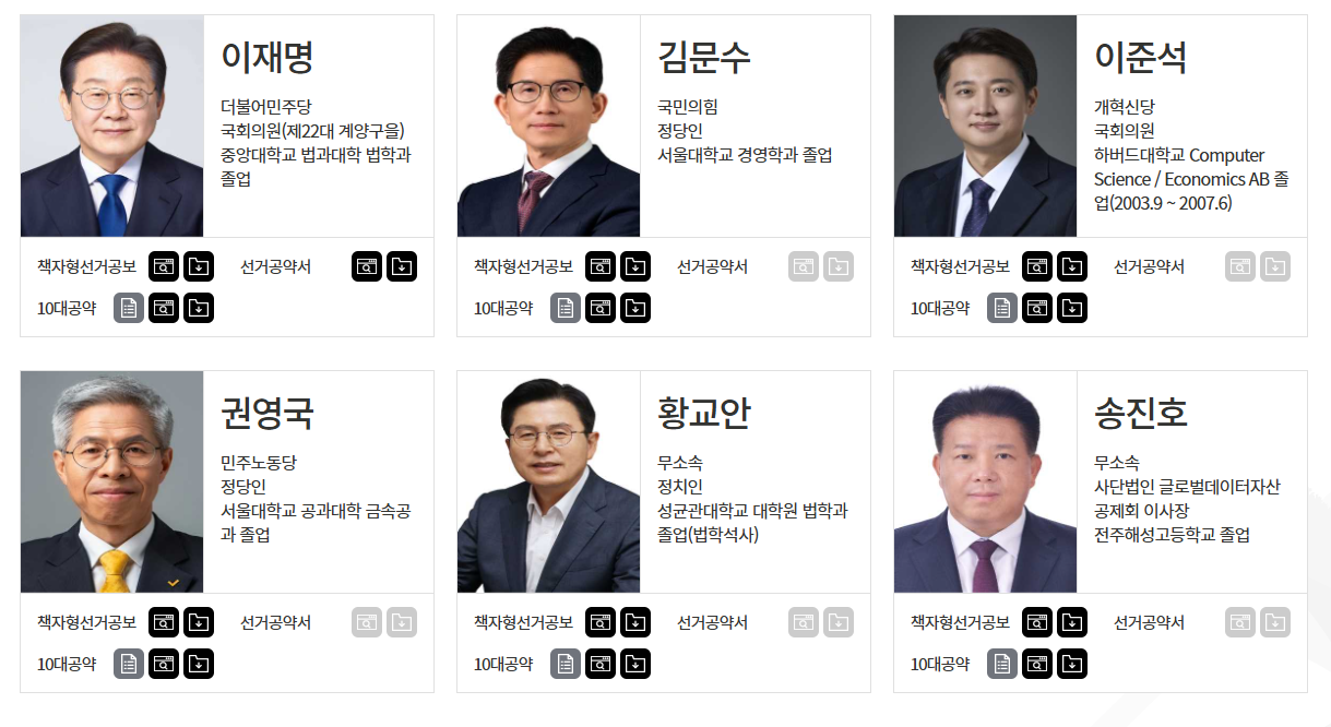 • 또한, 유권자들이 후보자에 대한 정보를 쉽게 접할 수 있도록 중앙선관위 홈페이지와 모바일 앱을 통해 상세한 정보가 제공되고 있습니다.