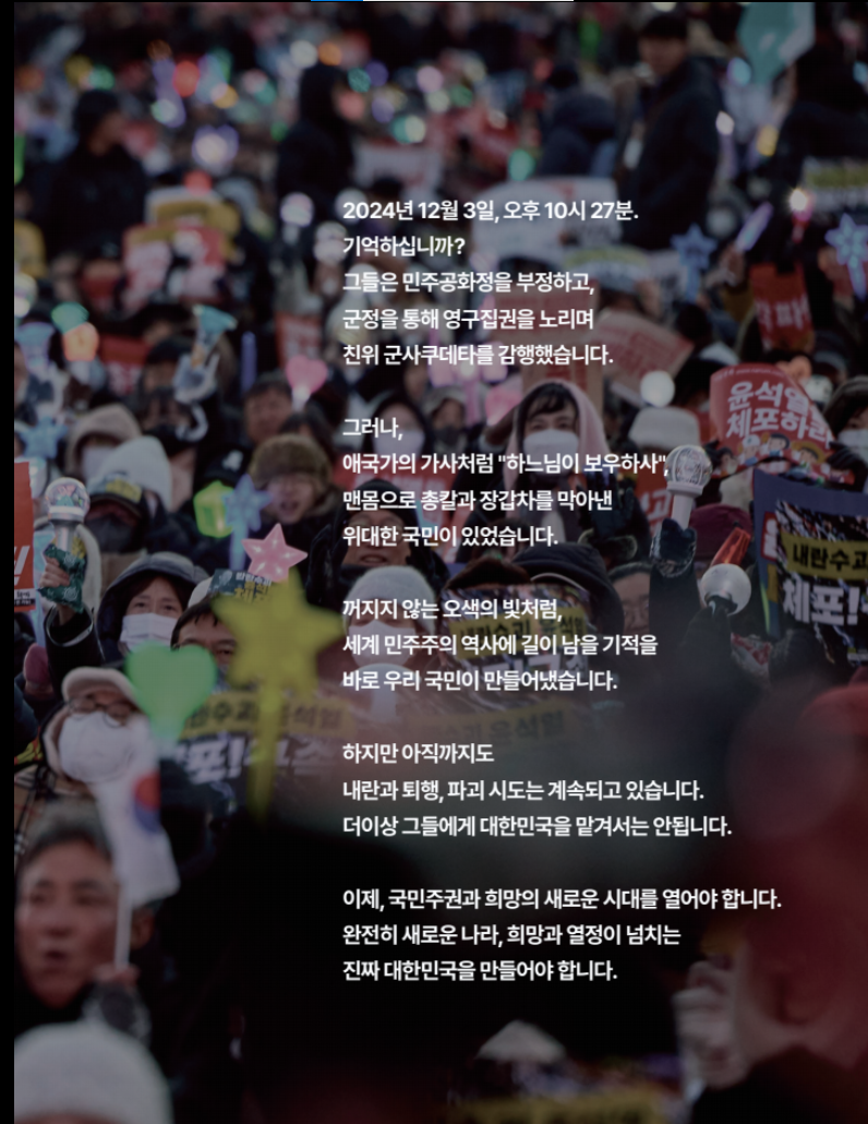 - 이번 선거는 대한민국의 미래를 결정짓는 중요한 기회이므로, 모든 유권자의 참여가 필요합니다. 특히, 사전투표제도를 활용하면 시간과 장소에 구애받지 않고 투표에 참여할 수 있습니다.