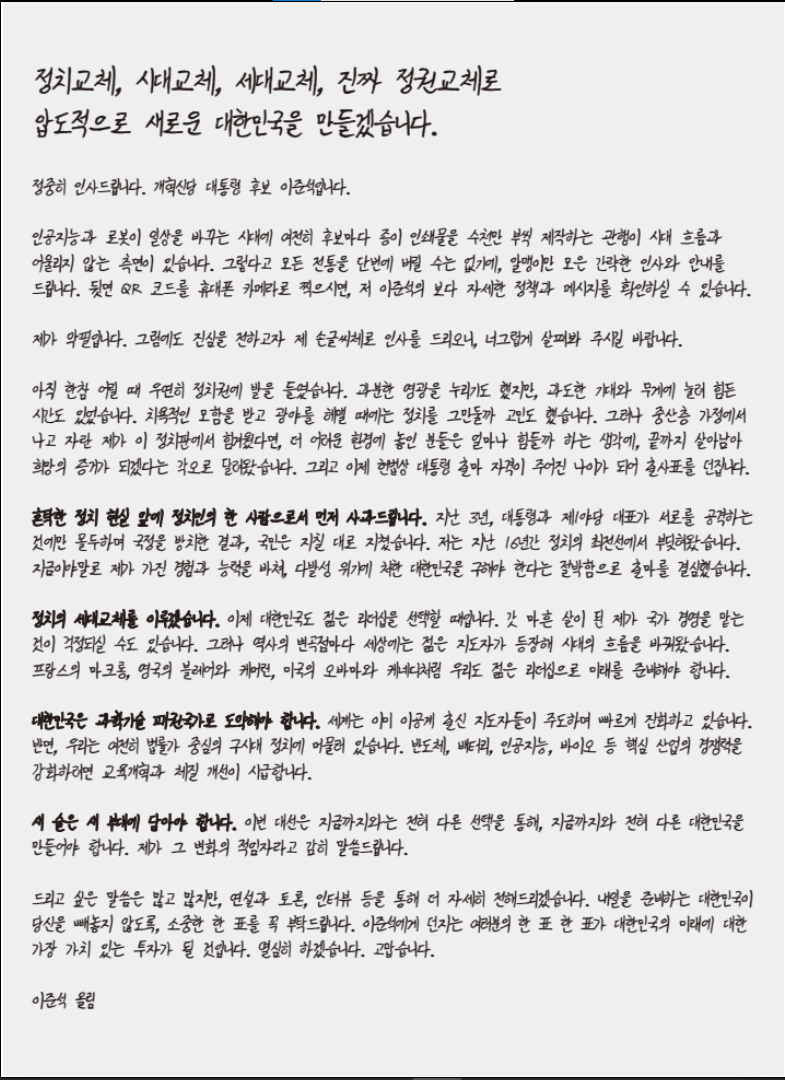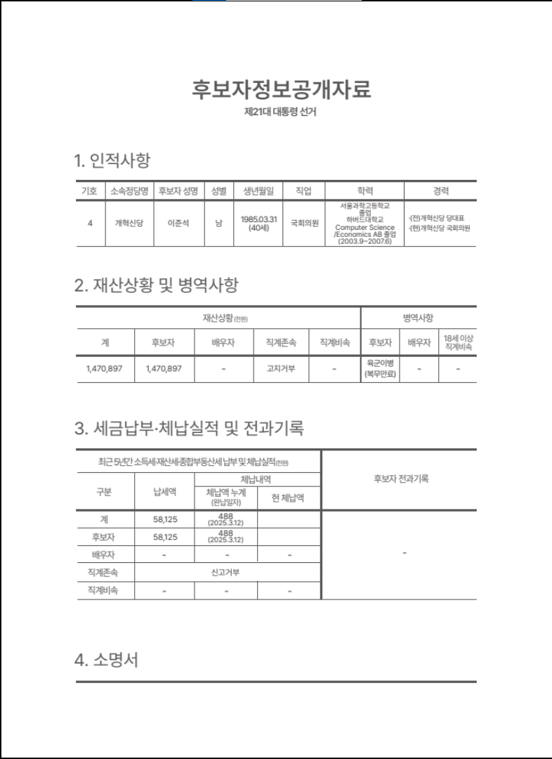 기호4번 후보자 이준석님공약 및 후보자 정보 !