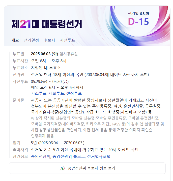 - 본 투표: 2025년 6월 3일 (화요일)