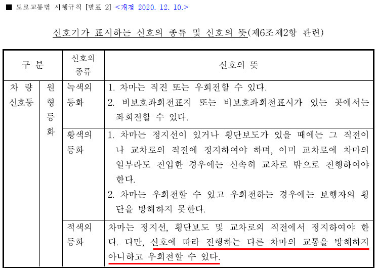 따라서 별도의 우회전 전용신호기가 없는 교차로인 경우라면